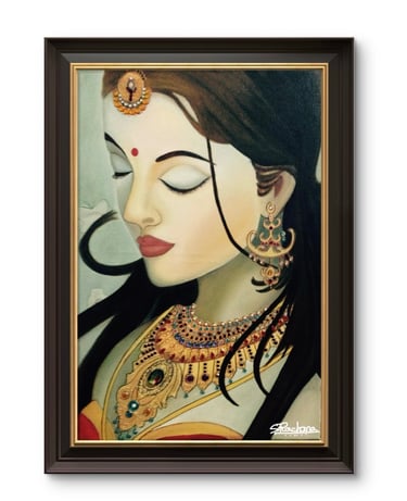 Over the years of experimentation I have developed a unique style of art,I paint landscape figurative art with a touch of surrealism which I call landscape figurative surrealism art and I also paint traditional modern art and mixed media art[a traditional 2D medium combined with real three dimensional objects (the jewellery stones also referred as Kundan).